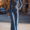 The Black Lace Illusion Bodice Wide-Leg Evening Jumpsuit is inspired by the original Black Lace Illusion Bodice Wide-Leg Evening Jumpsuit and designed to deliver a streamlined, one-piece silhouette. The fabric provides a smooth feel with enough structure to hold shape while allowing natural movement. Visible details such as neckline design, seam placement, and leg cut contribute to a balanced look. This jumpsuit is worn as a complete outfit, making it easy to style for casual gatherings or semi-formal occasions. It maintains its structure throughout wear and offers dependable comfort with a polished finish.